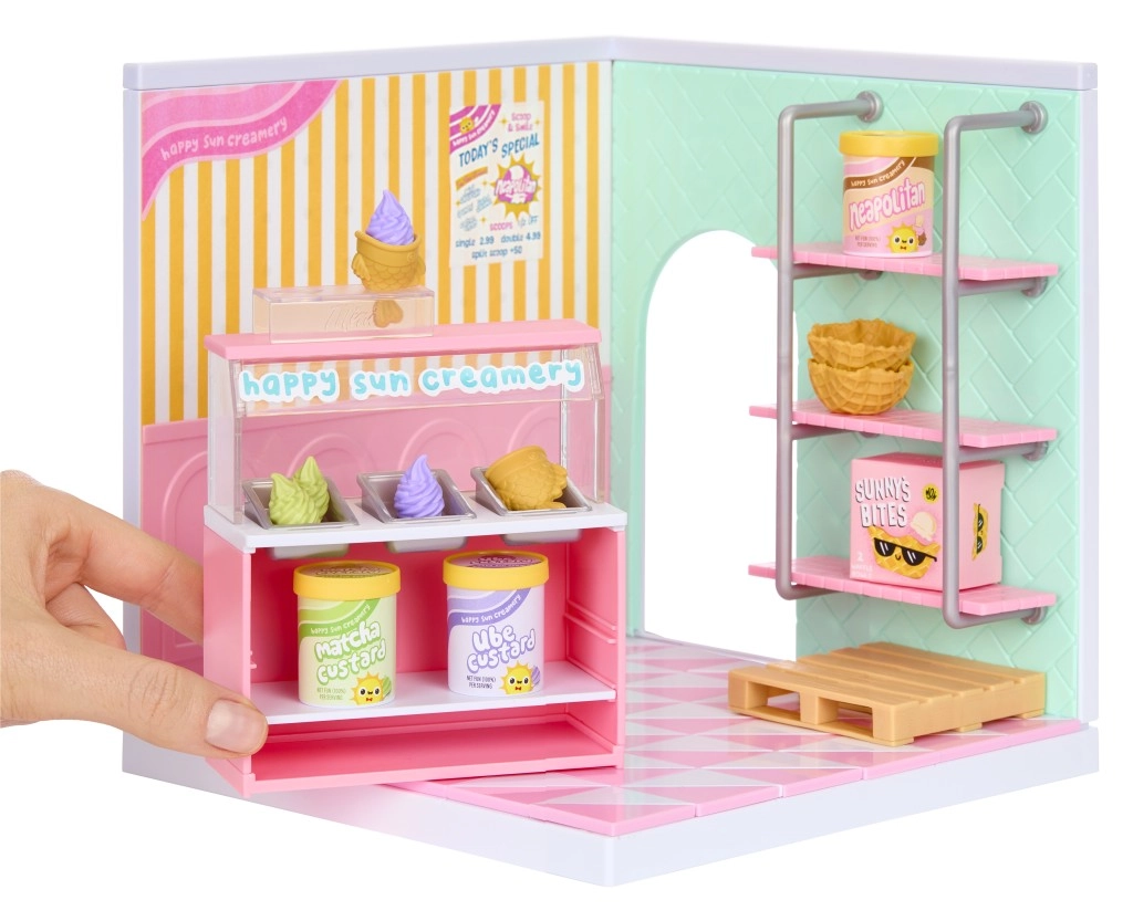 Scegli tra stili diversi – dalla tenera “Happy Sun Creamery” con palline di gelato, allo “Stay Fresh Salad Bar”, “Sun‑Baked Sweets” panetteria, fino alle vetrine congelate e agli stand di mercato con cassette. I moduli impilabili e le casse a incastro consentono ristrutturazioni facili e il massimo utilizzo dello spazio. Grazie alle capsule compatte, sono ideali anche come sorprese da collezione o come regalo.