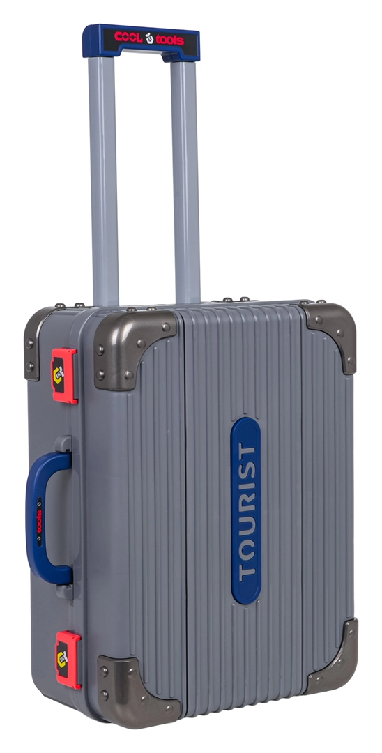 Due valigette collegate si trasformano in pochi attimi in un stabile banco da lavoro per bambini e, dopo il gioco, tornano a essere un bagaglio compatto con ruote e maniglia estraibile. Facile da riporre e da portare in viaggio.