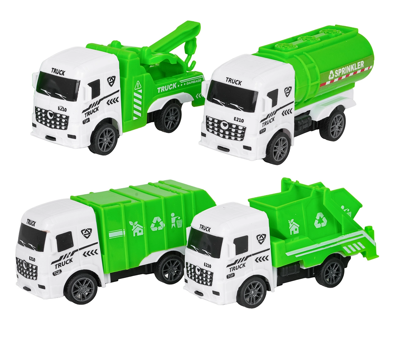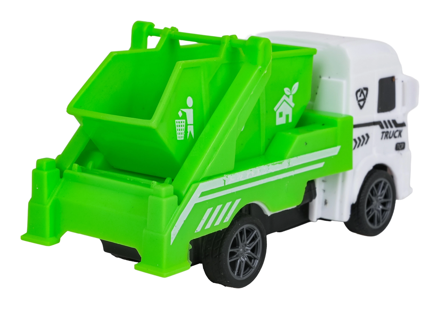 Ogni veicolo offre una funzione propria: il camion della spazzatura ha il coperchio apribile, il ribaltabile solleva il cassone, il carro attrezzi ha un braccio mobile e l’autocisterna/spruzzatrice simula la manutenzione delle strade. Il set sviluppa la motricità fine, l’immaginazione e il racconto di storie: ideale per i piccoli appassionati di mezzi cittadini.