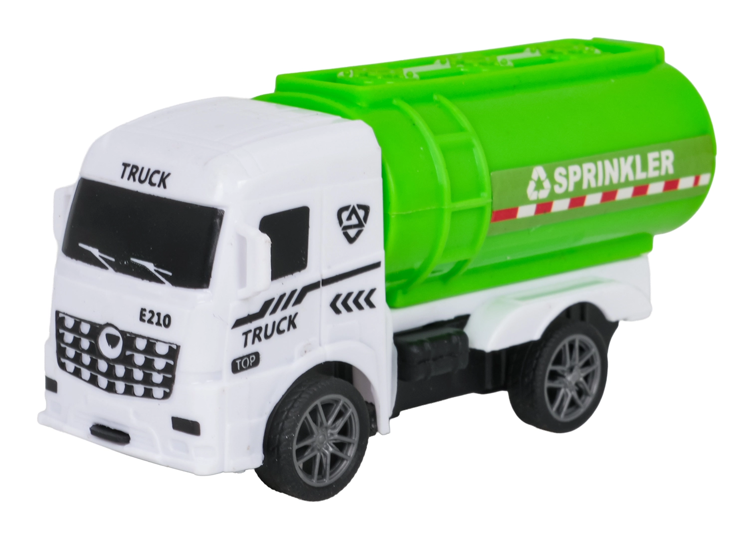 Coperchio apribile del camion dei rifiuti, cassone ribaltabile, braccio del carro attrezzi mobile e autocisterna realistica stimolano il gioco di fantasia.