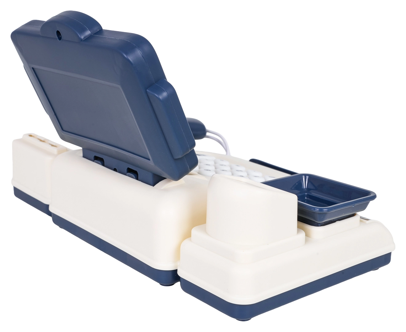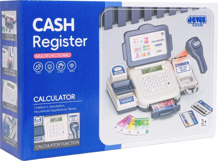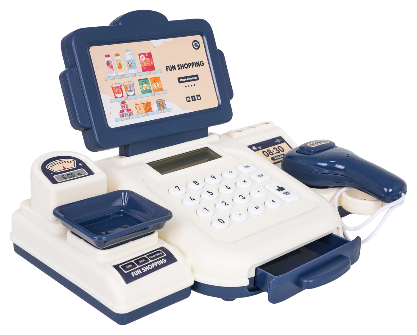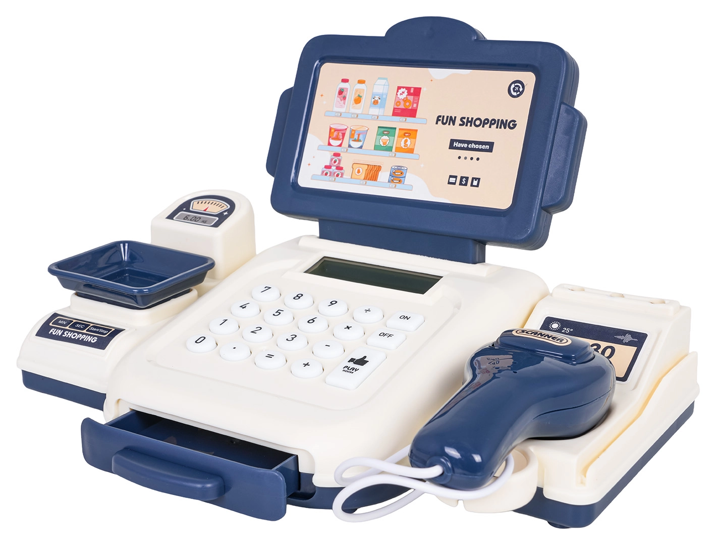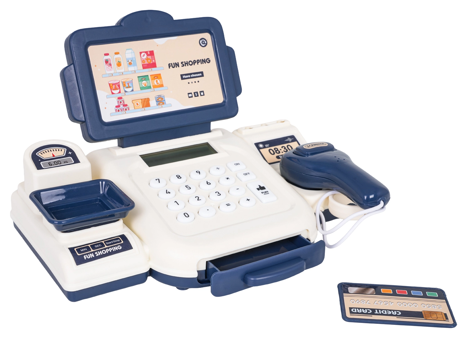 Giocare al negozio non è mai stato così divertente! Questa cassa per bambini in colore blu-crema offre una calcolatrice funzionante, uno scanner con luce e suono, una bilancia e un cassetto portadenaro apribile. Nella confezione trovi anche una carta di pagamento e banconote di carta, così i piccoli venditori possono esercitarsi a fare i conti e nei pagamenti senza contanti.