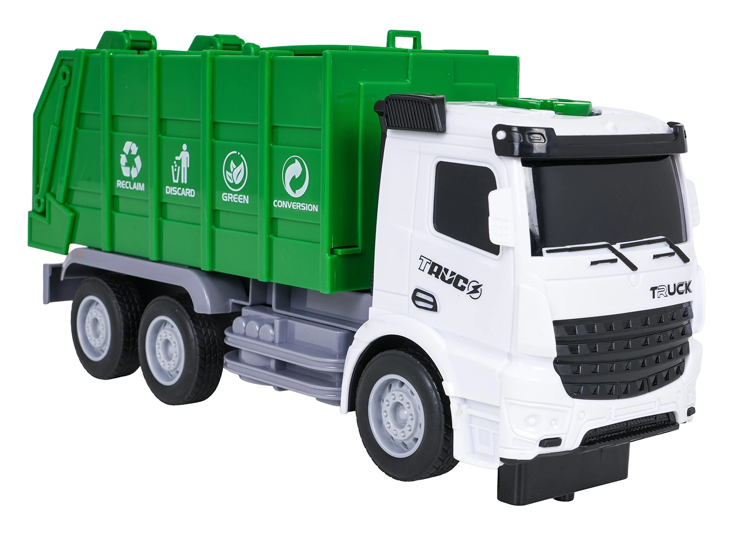 Questo realistico camion dei netturbini farà felice ogni piccolo appassionato di mezzi da lavoro. La struttura robusta, l’attenzione ai dettagli e le gomme in gomma assicurano una guida fluida e dinamica su diverse superfici. Sul tetto della cabina trovi il pannello di controllo che attiva i suoni di avviamento, marcia, retromarcia e la melodia energica, accompagnati da luci lampeggianti.
