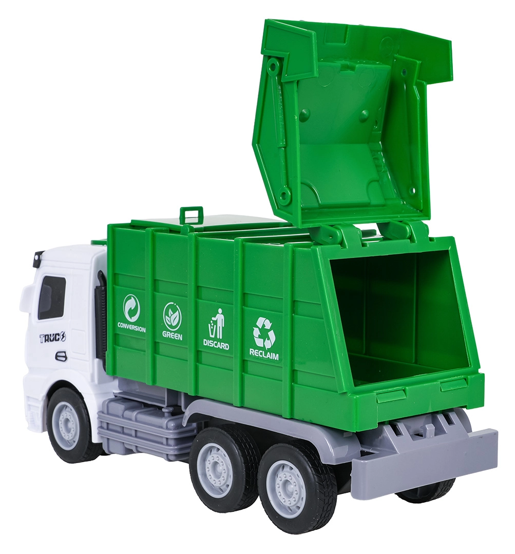 Per un’esperienza ancora più autentica, il veicolo dispone di portellone posteriore apribile e finestra di carico superiore per facilitare il “carico dei rifiuti”. Il gioco stimola l’immaginazione, la motricità fine e l’apprendimento dei principi di selezione e riciclo.