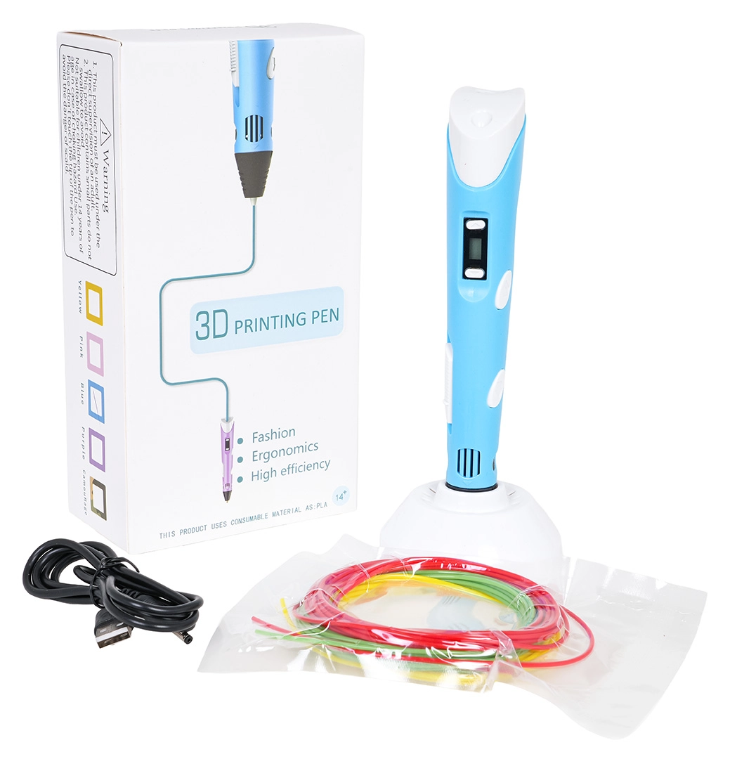 Scopri un modo divertente per trasformare le idee in realtà. La penna 3D blu con design ergonomico è progettata per una presa comoda e un uso semplice. Grazie al funzionamento sicuro e alla regolazione della temperatura, anche i principianti dai 14 anni in su possono utilizzarla senza difficoltà.