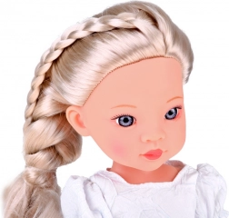 Elegante bambola alta ca. 33 cm, realizzata in plastica resistente, con braccia, gambe e testa mobili per posarla facilmente in diverse posizioni. I lunghi capelli biondi intrecciati si possono pettinare e modellare, stimolando creatività e motricità fine.