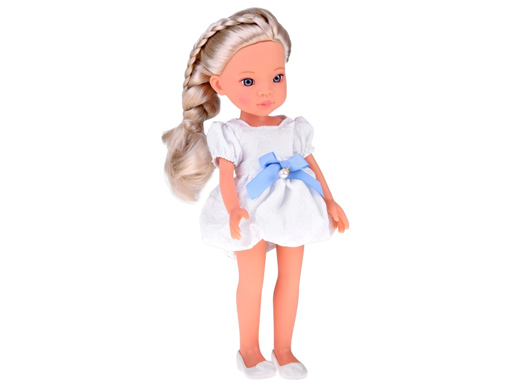 La graziosa bambola Lovely Girl con lunghi capelli biondi intrecciati incanterà ogni bambino. Ha arti mobili, occhi e viso realistici ed è vestita con un abito bianco con fiocco blu e dettaglio perlato. Grazie alla plastica di qualità e ai capelli facili da pettinare è ideale per gioco di ruolo, cambio di outfit e styling delle acconciature.