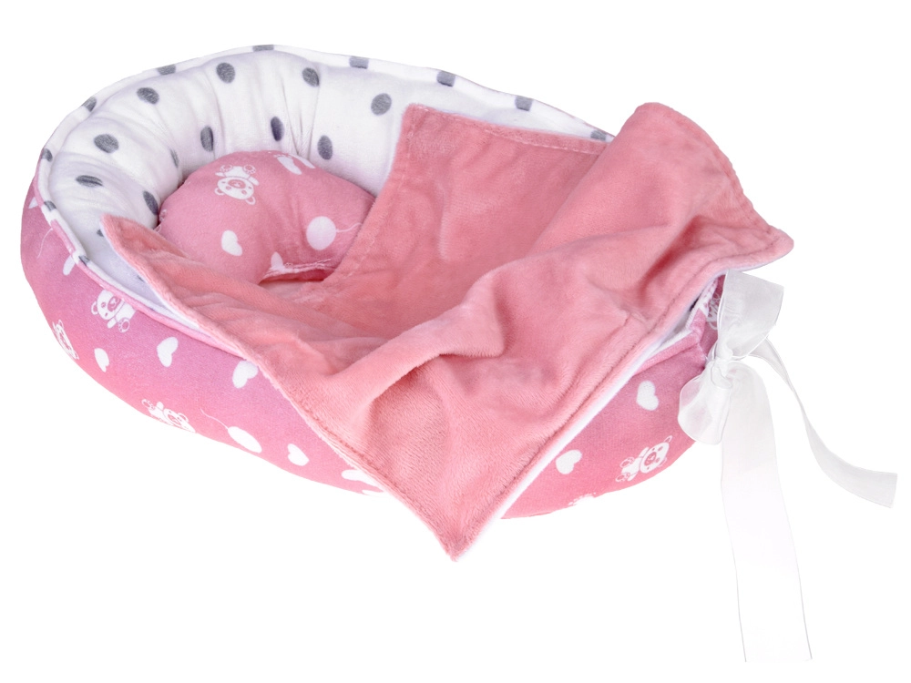 Culletta tessile con fodera a pois e fiocco che offre alla bambola un ambiente accogliente. I bambini possono trasportarla facilmente e mettere a dormire il bebè in qualsiasi momento e luogo.