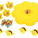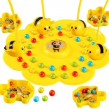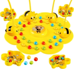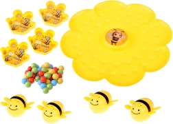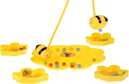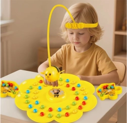 Indossate la fascia elastica con la bacchetta, fissate l’ape magnetica, spargete le palline sulla base floreale e al segnale si comincia la pesca! I giocatori, con l’ape, raccolgono le palline nelle proprie ciotole – o in colori qualsiasi, oppure solo nel colore scelto. Vince chi ne ha di più o chi completa per primo i “propri” colori.