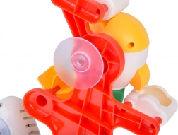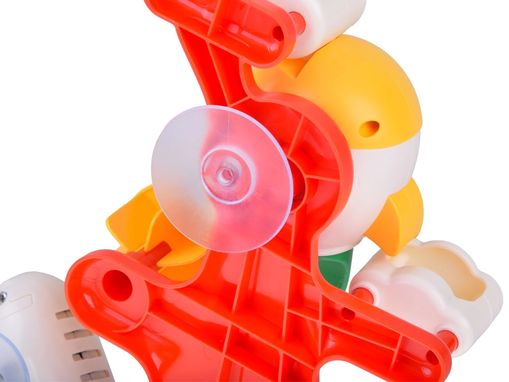 Il giocattolo si fissa facilmente con forti ventose su una superficie liscia. I bambini allenano la motricità fine, la coordinazione occhio–mano e la percezione sensoriale mentre travasano, spruzzano e osservano l’acqua scorrere. Il circuito chiuso risparmia acqua e semplifica l’uso senza continui rabbocchi.