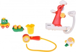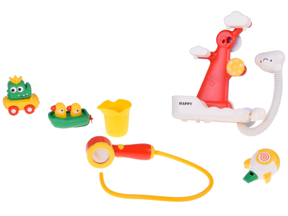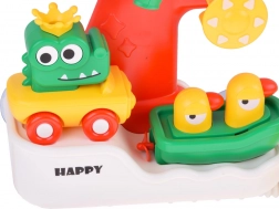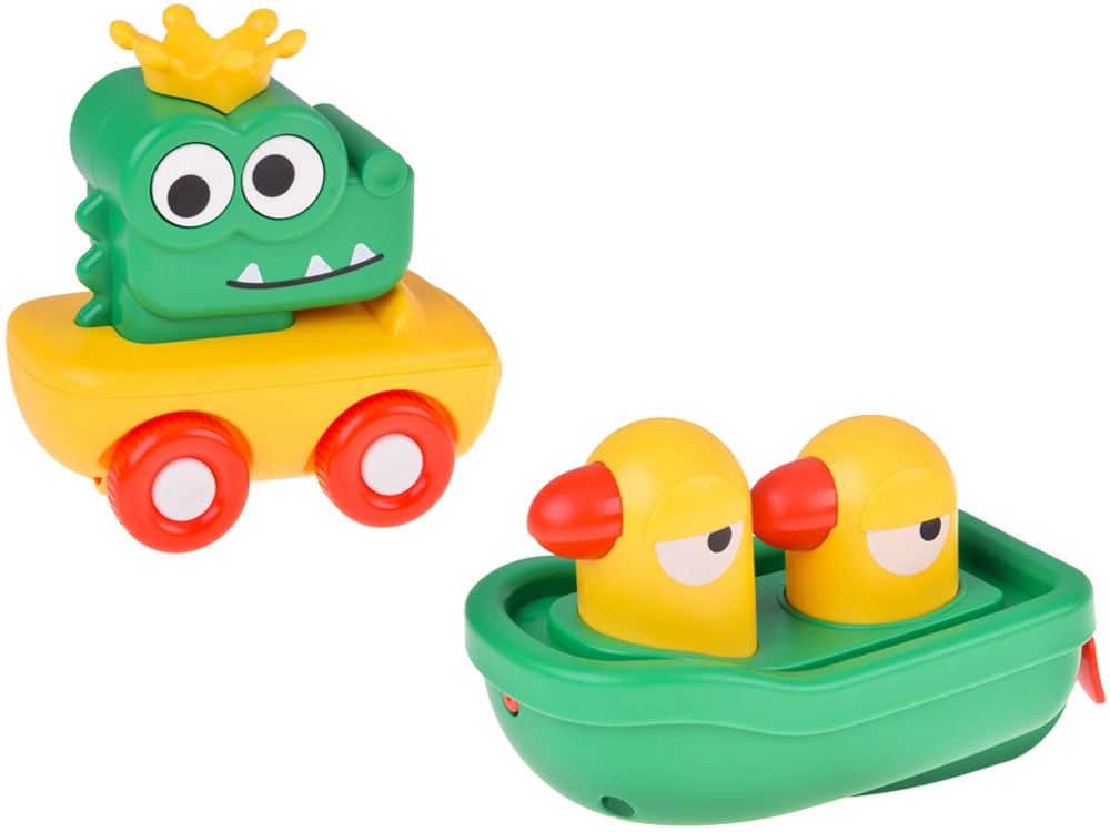 Inclusi un coccodrillo in macchinina, una barchetta con due paperelle e un bicchierino per travasare. Gli elementi galleggianti stimolano la fantasia e prolungano il tempo di gioco in vasca.