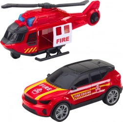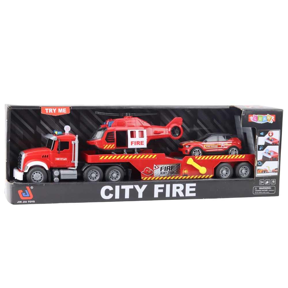 - Autocarro con rimorchio, autopompa, elicottero dei vigili del fuoco, 3× batterie AG13, confezione originale