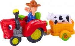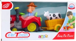 Il trattore agricolo interattivo con rimorchio e figurina del contadino farà felice ogni piccolo amante della vita di campagna. Il giocattolo si muove avanti e indietro, ha effetti luminosi, riproduce melodie e suoni e la figurina del contadino si muove durante la guida. È incluso anche un rimorchio con la mucca, che incoraggia il gioco creativo a tema fattoria.
