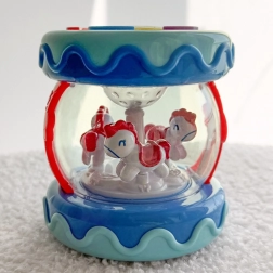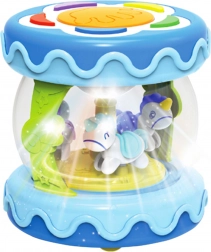 Scopri un giocattolo musicale universale che diverte e rilassa. Il tamburo 3‑in‑1 WOOPIE funziona come tamburo con grande pulsante, carillon con cavallini rotanti e proiettore notturno che imita le stelle. Le luci lampeggianti e le melodie piacevoli favoriscono lo sviluppo dell’udito, della vista e della concentrazione.