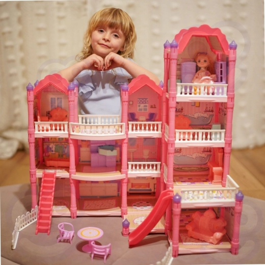 Scopri l’incantevole casetta per bambole a tre piani con tetto rosa, ricca dotazione e illuminazione notturna. Il set offre 296 pezzi tra adorabili mobili, accessori e una bambola, così i bambini possono arredare ogni stanza a piacere. Scivolo, scale e terrazza aggiungono ulteriore divertimento e stimolano creatività, immaginazione e motricità fine.