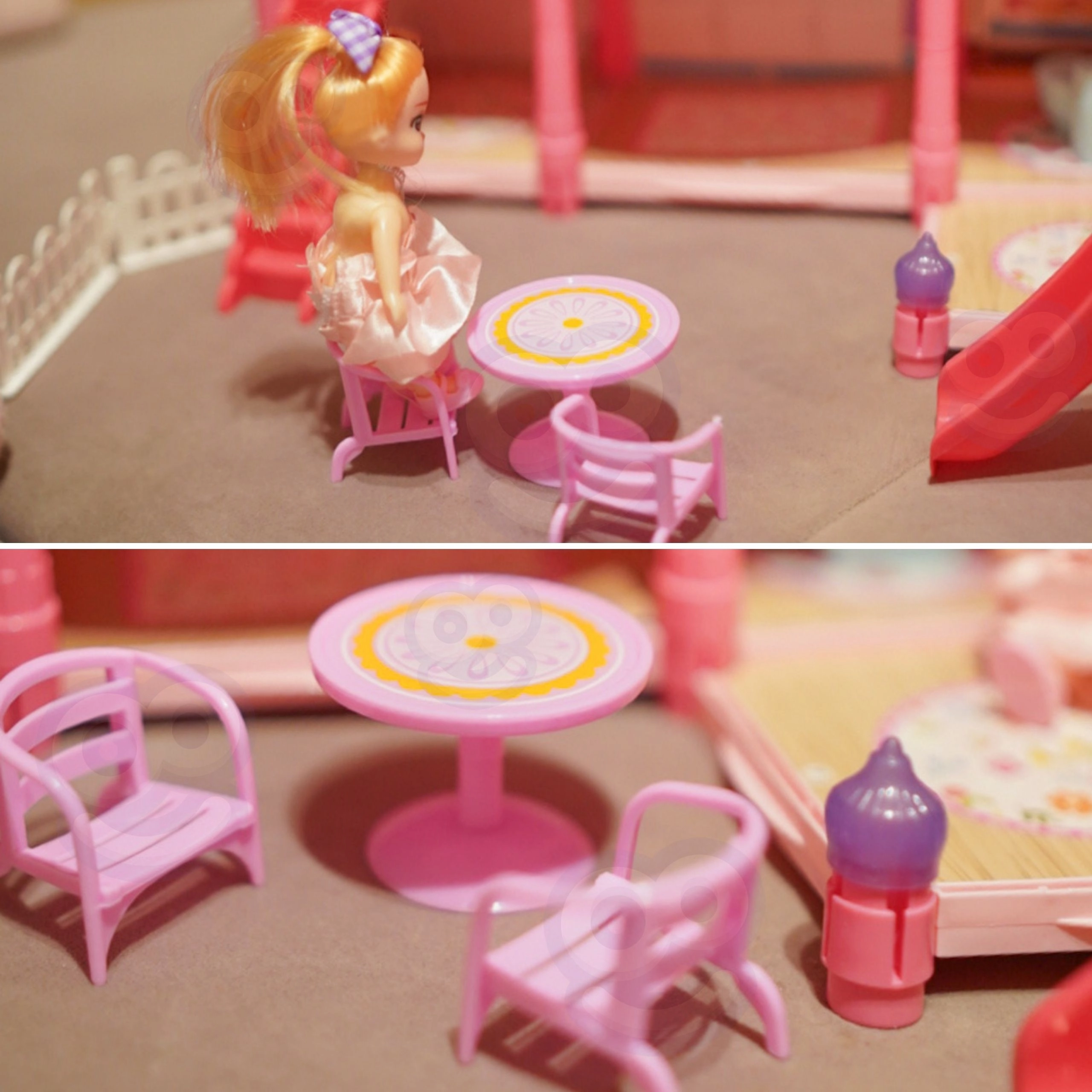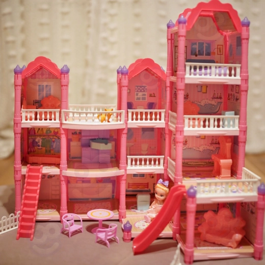 bambola, elementi per la costruzione della casa, mobili, ghirlanda luminosa, accessori