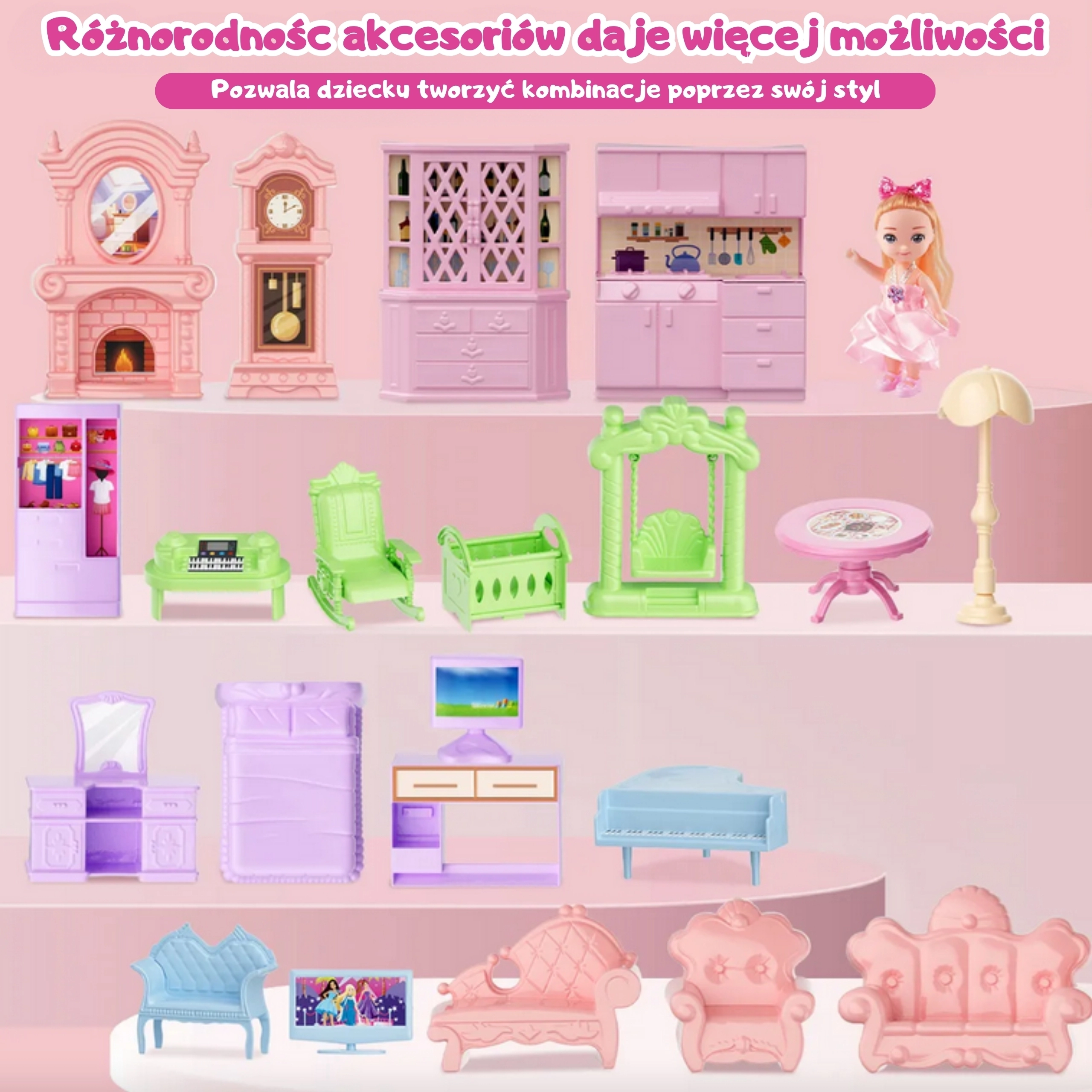 Incluso un ricco set di accessori – mobili, decorazioni e personaggi – per permettere ai bambini di riorganizzare e pianificare liberamente gli interni. Materiali sicuri, bordi arrotondati e finiture di qualità garantiscono un gioco spensierato già dai 3 anni.