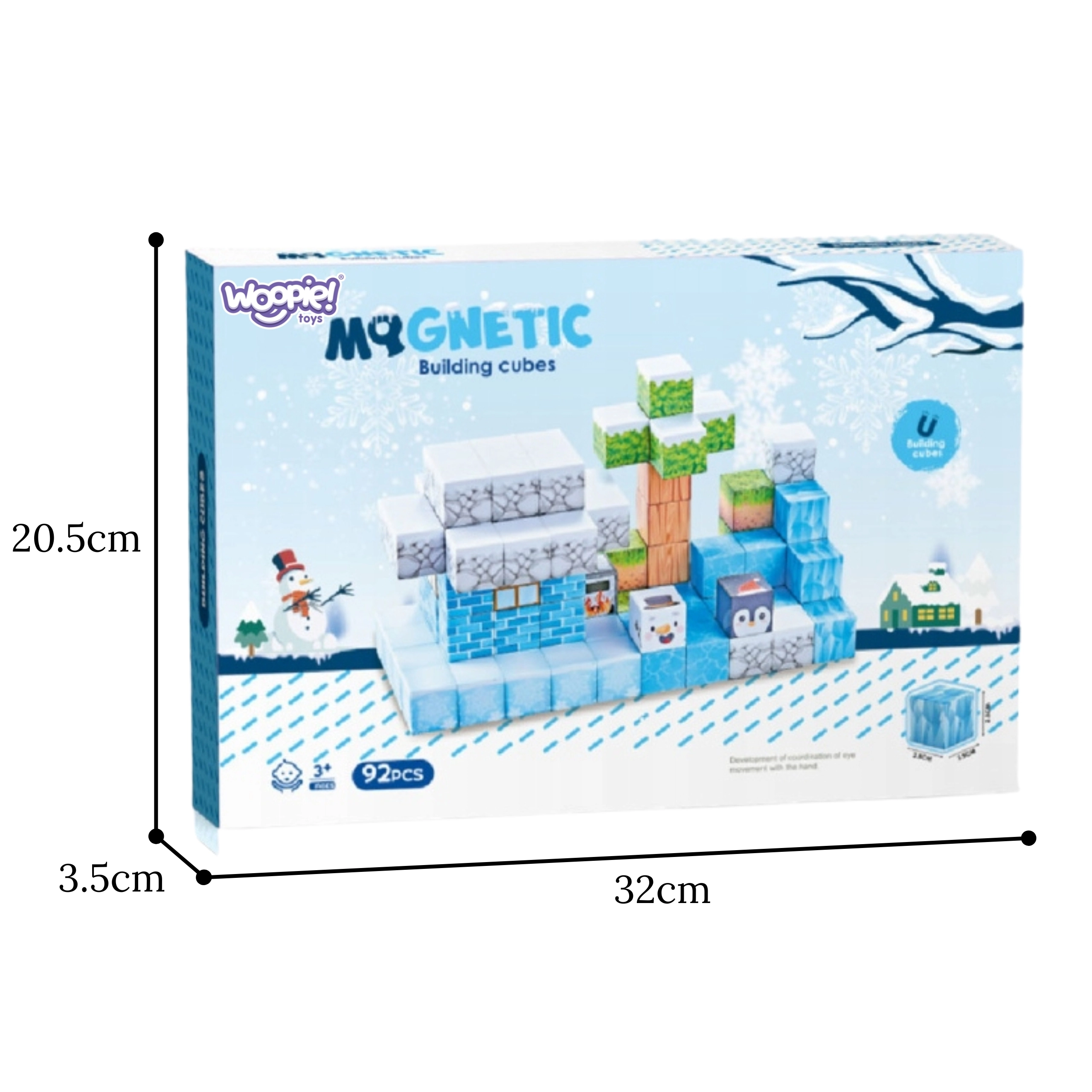 Questo set da 66 pezzi di mattoncini magnetici a tema invernale entusiasmerà i piccoli costruttori con motivi variopinti di ghiaccio, pietra, legno, foglie e animali polari. Ogni pezzo misura 2,5 × 2,5 × 2,5 cm e grazie ai magneti integrati aderisce in modo sicuro, così le strutture reggono senza bisogno di colla o altri connettori.