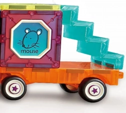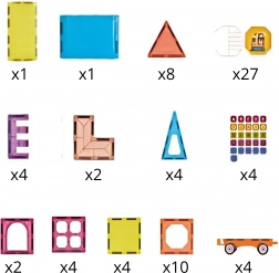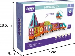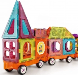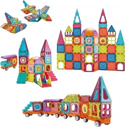 Scopri il mondo creativo delle costruzioni magnetiche. I pezzi colorati con forme e stampe diverse si agganciano in modo rapido e sicuro, così i bambini possono costruire subito locomotive, vagoni e veicoli originali. Il set incoraggia il gioco creativo e sviluppa il pensiero costruttivo.