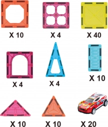 - 92 mattoncini magnetici colorati, 20 automobiline in metallo, scatola portaoggetti