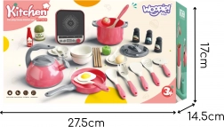 Il set da piccolo chef WOOPIE in rosa è ideale per bambini dai 3 anni che amano imitare gli adulti. Grazie alla piastra a induzione con luce, il gioco risulta realistico e favorisce un apprendimento naturale attraverso il gioco. La realizzazione in plastica di qualità e sicura garantisce lunga durata e uso confortevole.