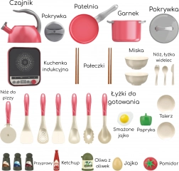 Nella confezione trovi tutto il necessario per “cucinare” il pranzo: pentole con coperchi, padella con uovo all’occhio di bue, teiera, piatti, ciotole, posate e anche verdure e spezie per completare l’esperienza culinaria. Grazie ai numerosi accessori, il gioco è stimolante, divertente e coinvolgente.