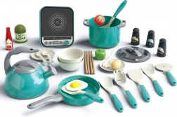 L’ampio set per piccoli chef del marchio WOOPIE offre un gioco di cucina realistico con ben 30 pezzi. I bambini si divertiranno a imitare gli adulti e svilupperanno creatività, immaginazione e motricità fine. Non mancano il piano cottura a induzione, pentole con coperchi, padella con uovo al tegamino, bollitore, posate, verdure e spezie: tutto per un gioco di ruolo divertente e realistico.