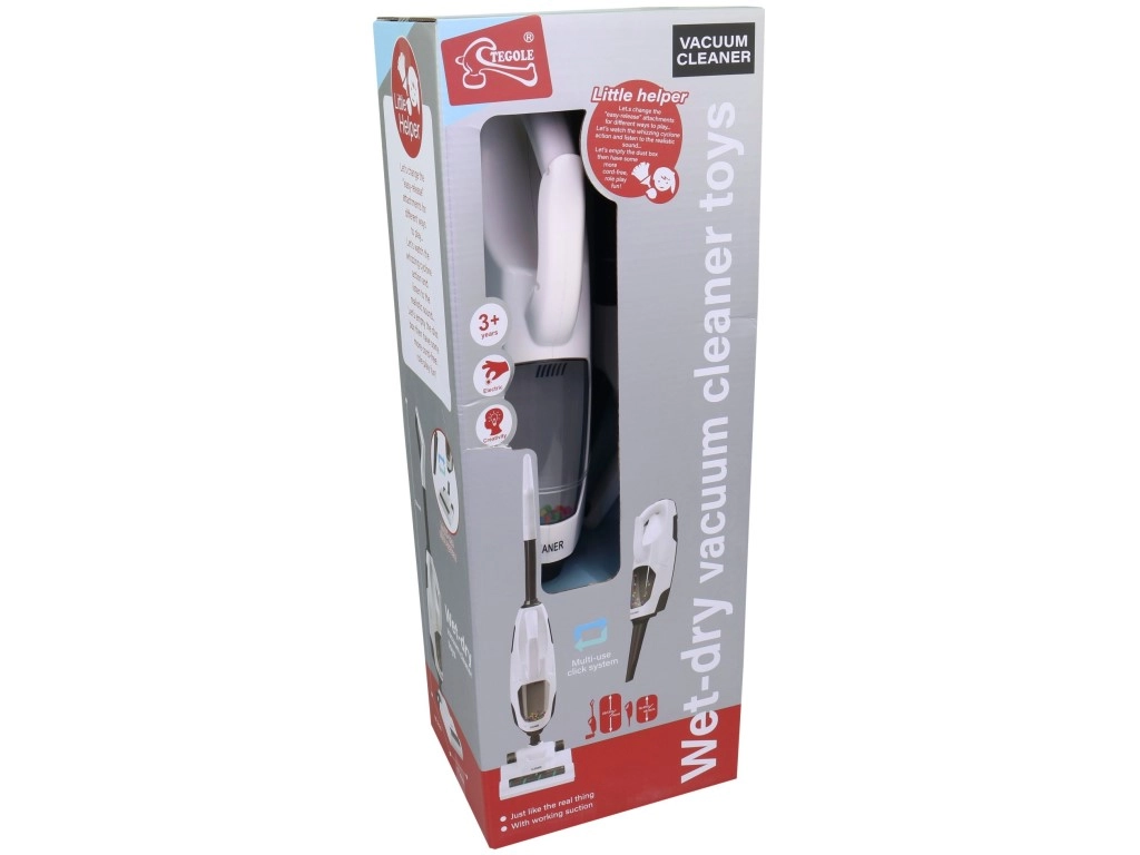 La struttura leggera e resistente in materiale plastico è adatta alle mani dei bambini. L’aspirapolvere è alimentato da 3× batterie AA da 1,5 V (non incluse) ed è adatto ai bambini dai 3 anni.