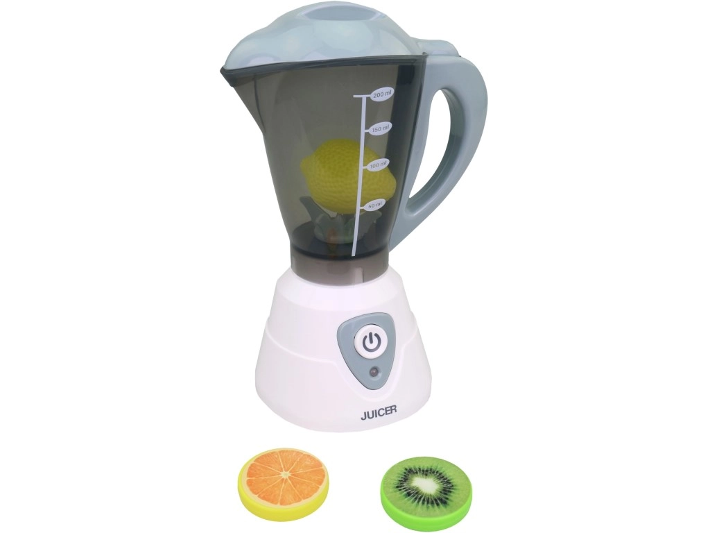 Divertente e sicuro frullatore a batteria per bambini con accessori a forma di frutta, perfetto per ogni piccolo chef. Dopo l’inserimento delle batterie emette un suono realistico di frullatura, rendendo il gioco ancora più divertente. Ideale come accessorio per la cucina giocattolo, stimola la fantasia, sviluppa la motricità e insegna ai bambini la preparazione di bevande ricche di vitamine.