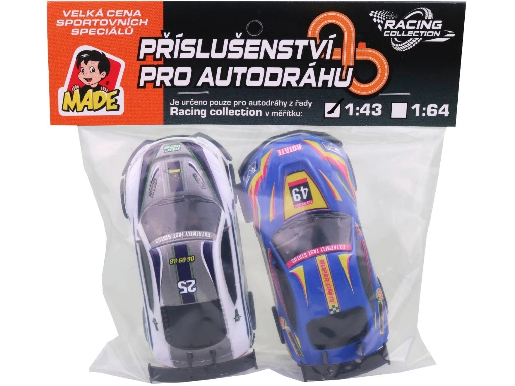 Completa la tua pista con auto sostitutive in scala 1:43. Questo set include 2 pezzi in due colori diversi, destinati esclusivamente alle piste della serie Racing Collection. Robusta costruzione in plastica, adatta ai bambini da 3 anni.