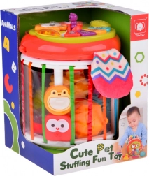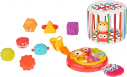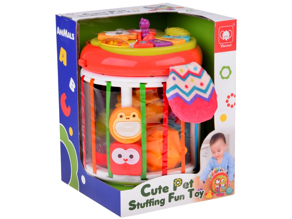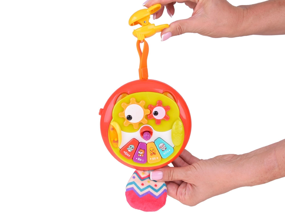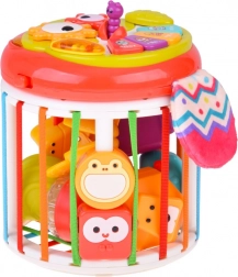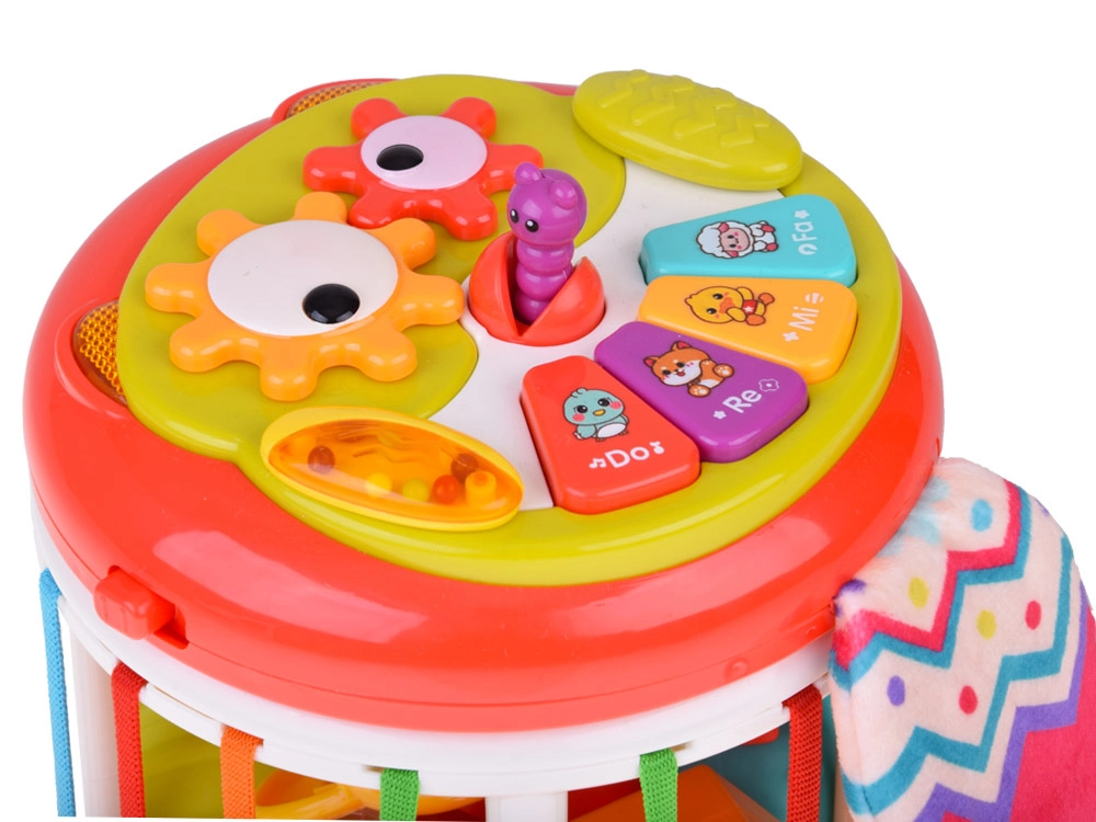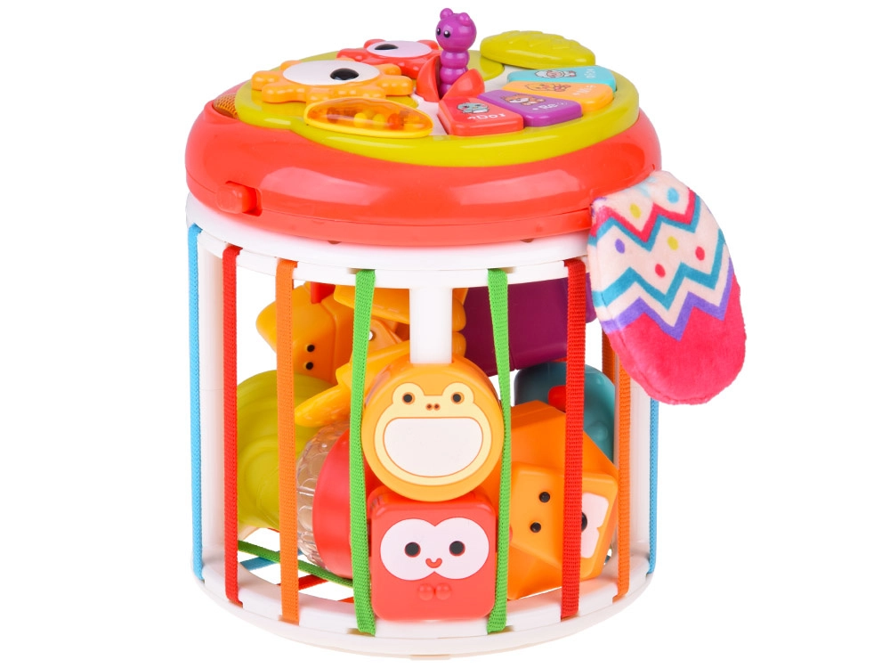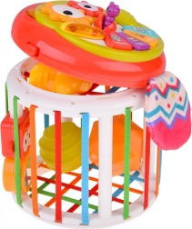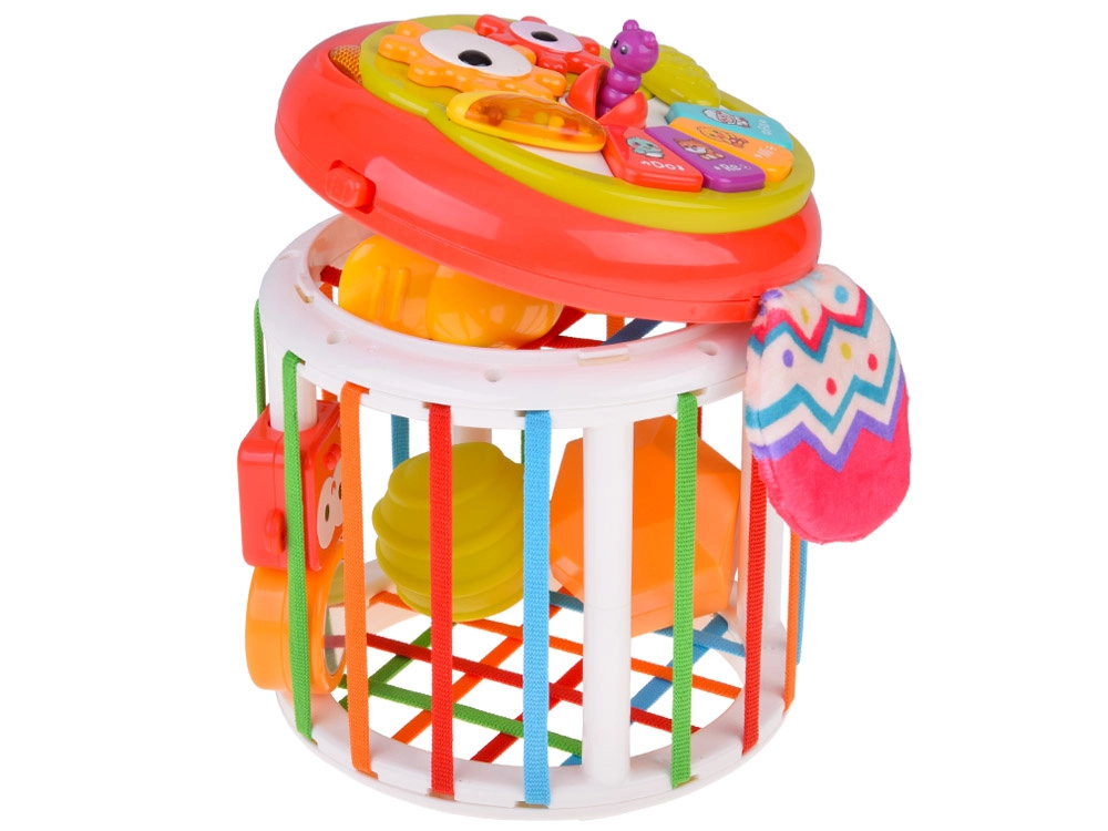 Un gufo interattivo 2 in 1, grazioso e colorato, che unisce un giocattolo musicale elettronico a un intelligente sorter. I bambini saranno affascinati da luci, suoni e melodie, dai pulsanti con animaletti e note do–re–mi–fa e da ricchi stimoli tattili. La “testa” del gufo è rimovibile ed è ideale in viaggio, mentre il cilindro–sorter colorato con elastici flessibili e forme sostiene lo sviluppo della motricità fine, della coordinazione mano–occhio e del riconoscimento di forme e colori.