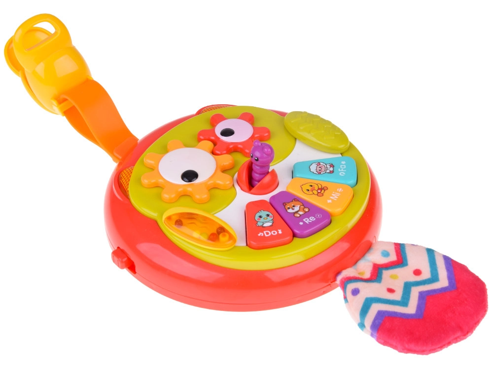 Quattro pulsanti con animaletti riproducono le note do–re–mi–fa, suoni realistici degli animali e brevi melodie e canzoncine strumentali. I bambini sviluppano udito e senso del ritmo attraverso il gioco naturale.
