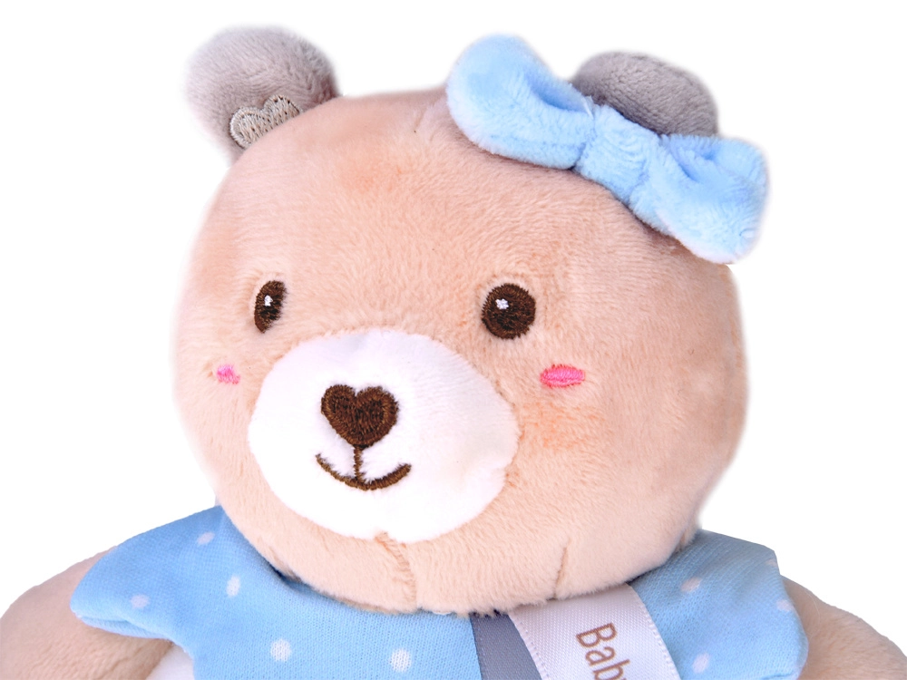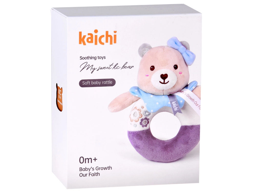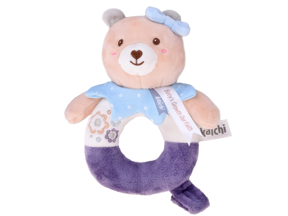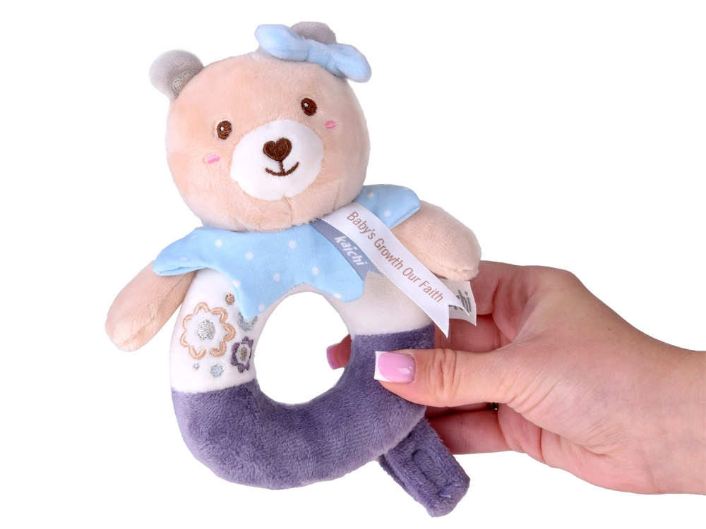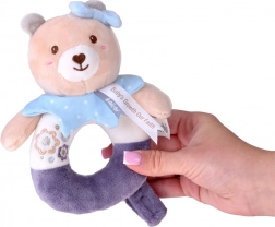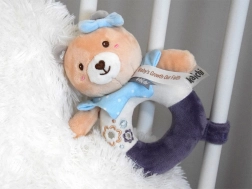 Il sonaglino di peluche a orsetto è realizzato con materiali di alta qualità e molto morbidi, piacevoli al tatto. La forma ad anello facilita presa e impugnatura, ideale per i primi tentativi del neonato di esercitare la prensione. I dettagli ricamati (occhietti, musetto, decorazioni) garantiscono la massima sicurezza senza piccole parti.