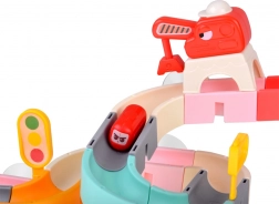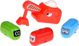 Il set include una gru magnetica con gancio, segnali stradali e macchinine “a fagiolo” con espressioni simpatiche. Durante la costruzione e il gioco i bambini esercitano motricità fine, coordinazione occhio–mano, orientamento spaziale e comprensione di causa ed effetto.