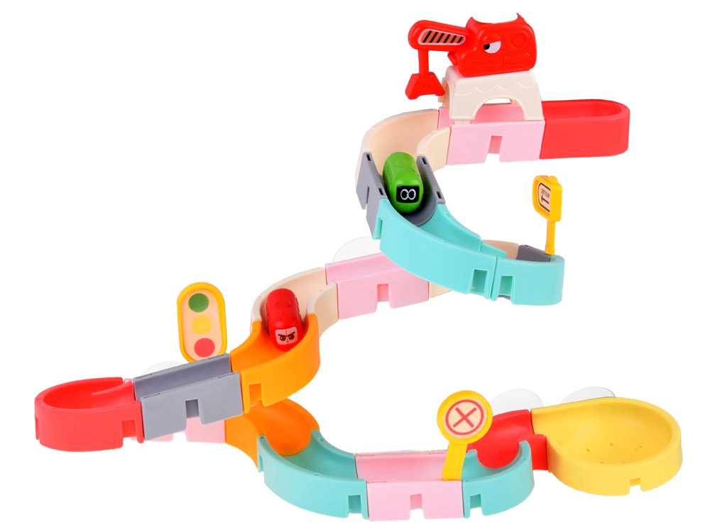 Set pista automobilistica da bagno con scivoli e ventose, 37 pezzi