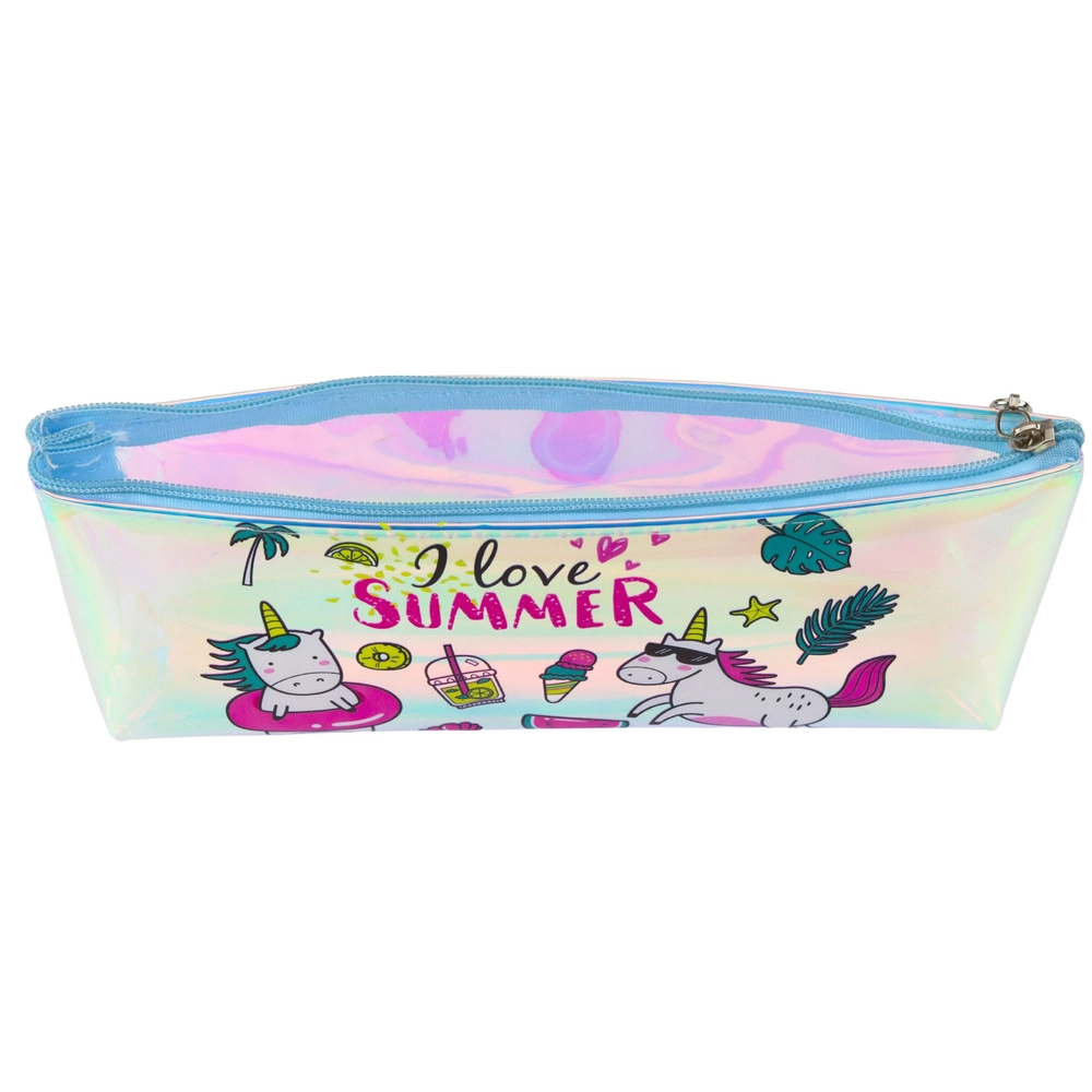 Cerchi un astuccio che unisca un design adorabile a una struttura pratica? Questo astuccio olografico con la scritta “I love SUMMER”, unicorni e icone estive colpisce per il lucente effetto iridescente e le dimensioni compatte, che fanno risparmiare spazio nello zaino. La struttura trasparente permette di trovare subito tutto ciò che serve.
