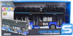 Realistico autobus urbano a due piani in scala 1:16 che entusiasmerà bambini e collezionisti. Offre effetti luminosi e sonori, trazione a frizione (pull-back), porte apribili e una resistente struttura in plastica nell’elegante colore blu.