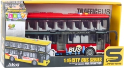 Realistico autobus a due piani in scala 1:16 che entusiasmerà piccoli e grandi appassionati di modellini. Offre trazione a frizione (pull-back), porte apribili e effetti luminosi e sonori attivati da pulsanti sul tetto. La struttura in plastica resistente e il vivo colore rosso enfatizzano l’aspetto di un vero autobus urbano.