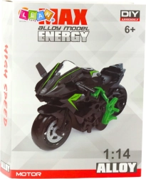 Kit di costruzione di una moto in metallo in scala 1:14 che entusiasmerà piccoli costruttori e appassionati di motori. I pezzi realistici nella combinazione verde‑nera danno vita, una volta assemblati, a un modello d’effetto. L’assemblaggio sviluppa motricità fine, pensiero logico, concentrazione e porta gioia per una creazione fatta con le proprie mani.