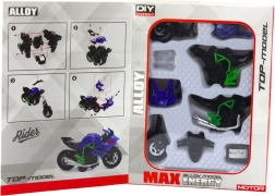 Assembla la tua moto! Questo modello in metallo e plastica in scala 1:14 offre dettagli realistici, un design moderno verde‑blu e regala a bambini e adulti un divertimento creativo che sviluppa motricità fine, pensiero logico e pazienza.
