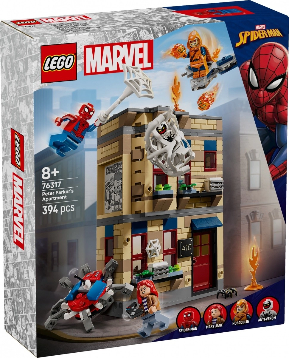 Inclusi 4 minifigure: Spider-Man, Anti-Venom, Mary Jane e Hobgoblin con aliante e bombe-pamela, più un ragno robotico snodabile. Il set può essere combinato con altri set LEGO Marvel per storie ancora più grandi dal mondo di SPIDER-MAN.
