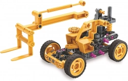 Questo kit educativo della linea Science & Play permette di costruire un carrello elevatore telescopico con elementi meccanici funzionanti. Grazie agli ingranaggi e alle articolazioni a vista, i bambini sperimentano concretamente il funzionamento di ruote dentate, trasmissioni e trazione delle ruote. Il set sostiene le competenze STEM e avvicina in modo ludico ai principi della meccanica.