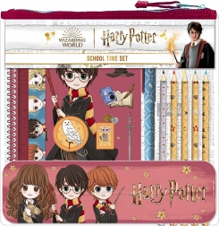 Elegante set scolastico con tema HARRY POTTER in astuccio di plastica trasparente, contiene tutto ciò di cui un piccolo (pre)scuolaro ha bisogno: astuccio, righello, matita, 4 pastelli, gomma, temperino, penna e blocco per appunti. Ideale per scrivere, disegnare e prendere appunti a scuola e in viaggio.