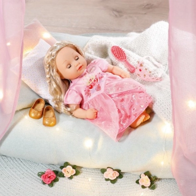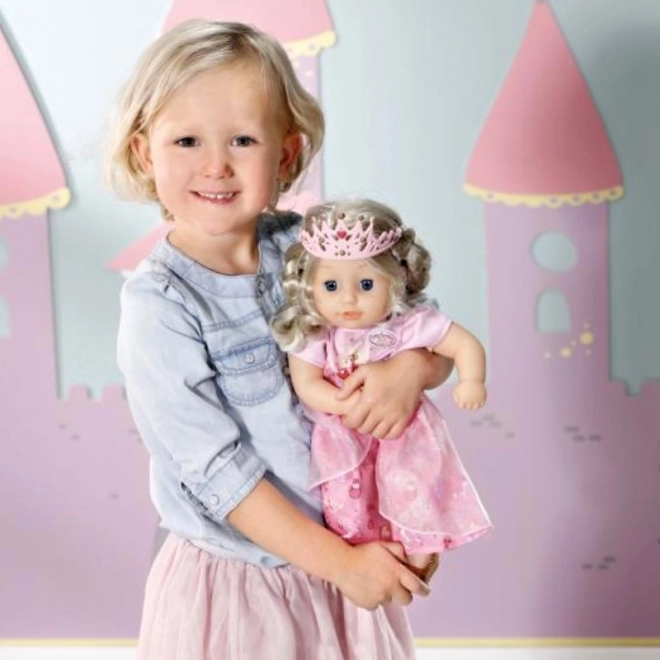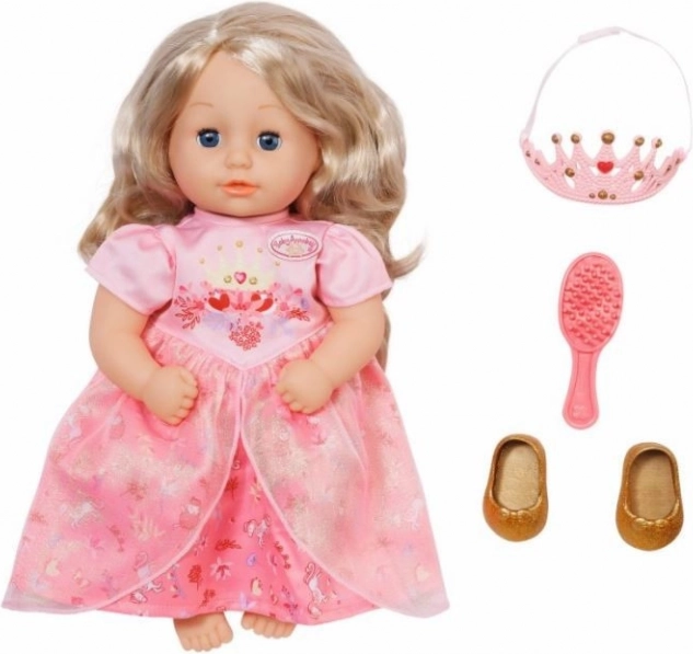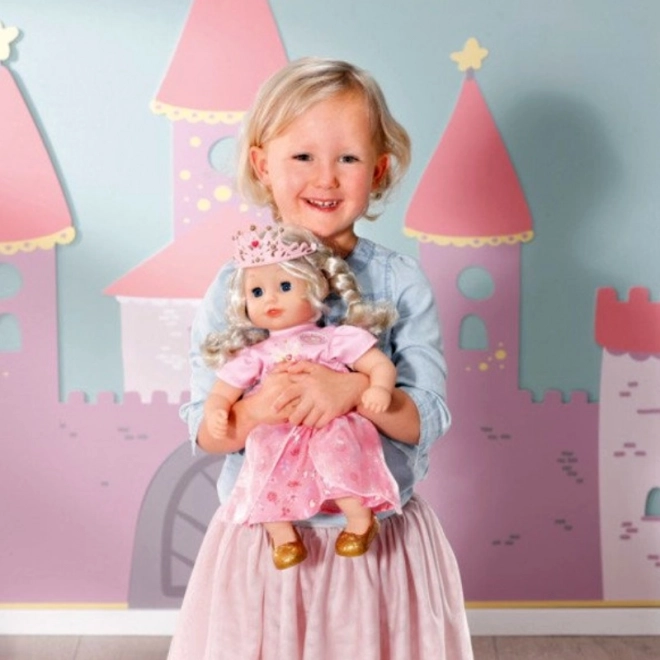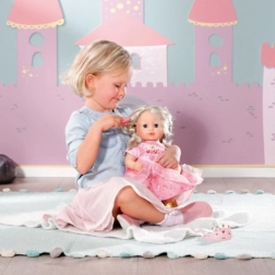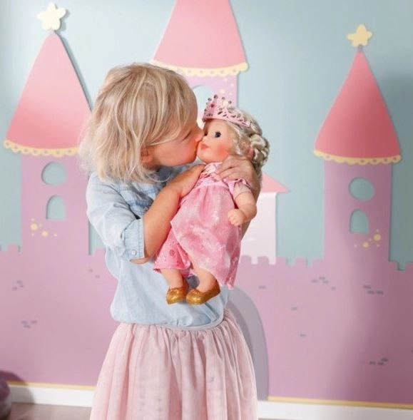La bambola Baby Annabell Piccola Dolce Principessa è come creata per piccole principesse con un'inclinazione alla fantasia. Quando la baci, risponde con suoni di baci e le sue guance diventano rosse. Inoltre, chiude i suoi occhi azzurri scintillanti. Con i suoi capelli di qualità e la propria spazzola per capelli, puoi creare bellissime acconciature. Il corpicino morbido di questa bambola è ideale per coccolarsi e riposare dopo una giornata di giochi.