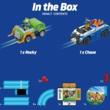 - 2× auto (Chase, Rocky), rettilinei, curve, 2× eliche rotanti, unità di alimentazione, 2× controller di velocità, supporti, barriere, giunti della pista, manuale