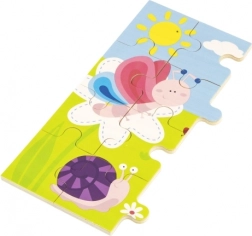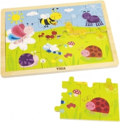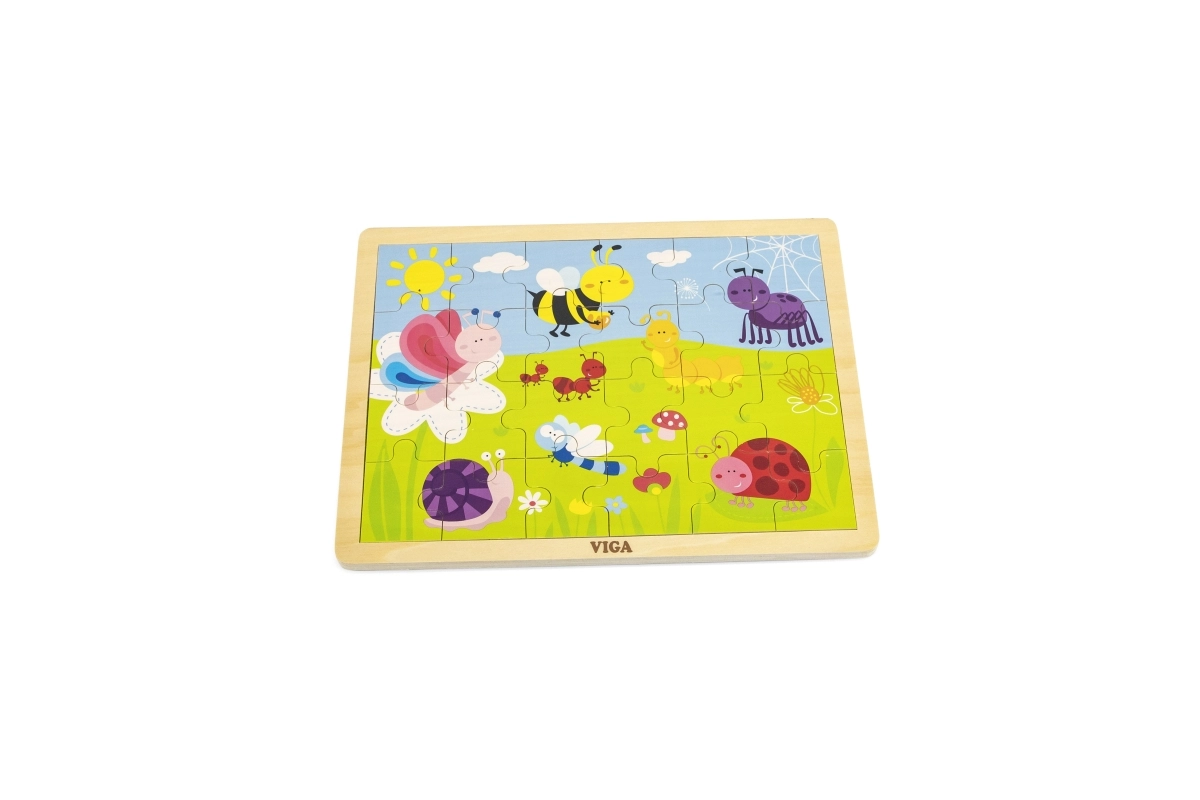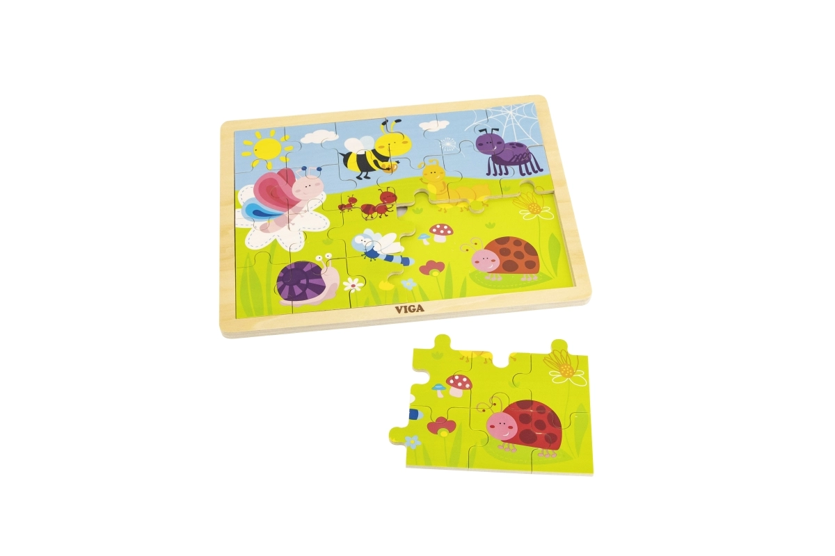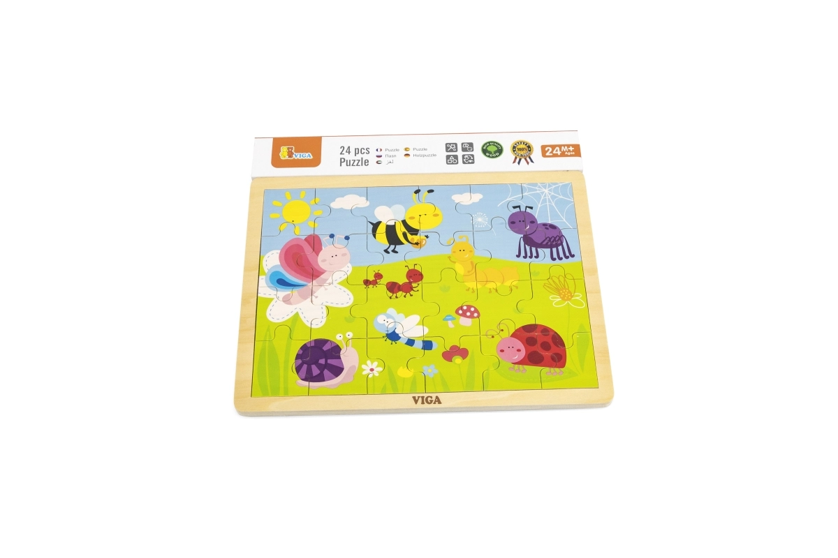 Scoprite i puzzle in legno di qualità VIGA con illustrazione di un prato pieno di insetti colorati – ape, farfalla, coccinella e lumaca. Assemblare i 24 pezzi robusti nella cornice sostiene pazienza e concentrazione, mentre i bambini riconoscono forme, colori e dettagli dell’illustrazione amichevole.