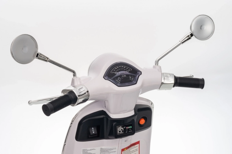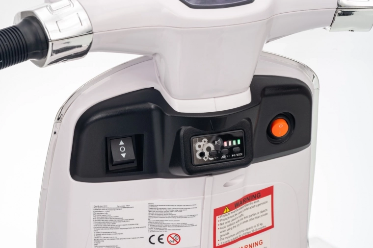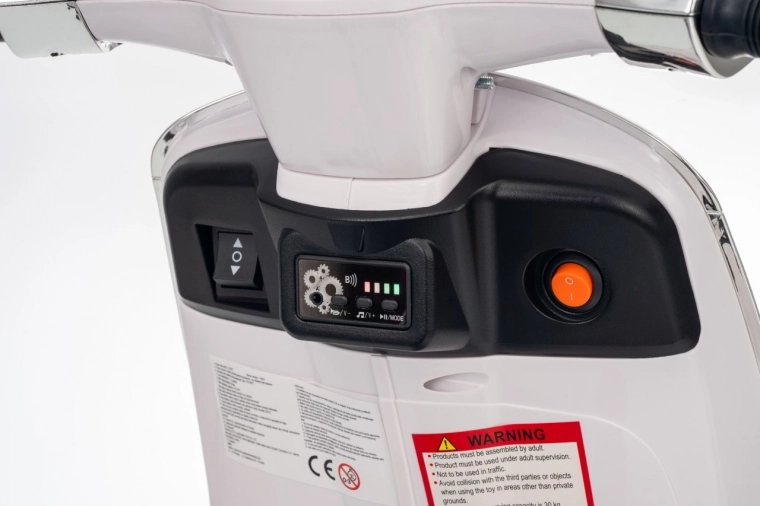Regala ai bambini la loro prima corsa su uno scooter iconico ispirato a VESPA. Il modello ROMA unisce sicurezza, praticità ed estetica senza tempo. Due potenti motori da 2×35 W in combinazione con batteria 12 V 7 Ah offrono una guida fluida, mentre l’avvio dolce (Soft Start) aiuta a evitare strappi alla partenza. La stabilità è garantita dalle ampie ruote in EVA, silenziose e resistenti.