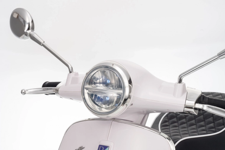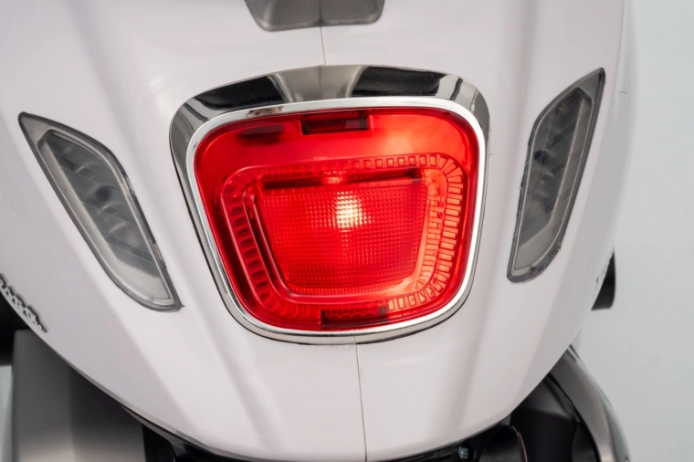 Le luci LED anteriori e posteriori funzionanti con interruttore dedicato e il design ispirato a VESPA aggiungono stile e sicurezza alla guida.