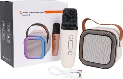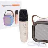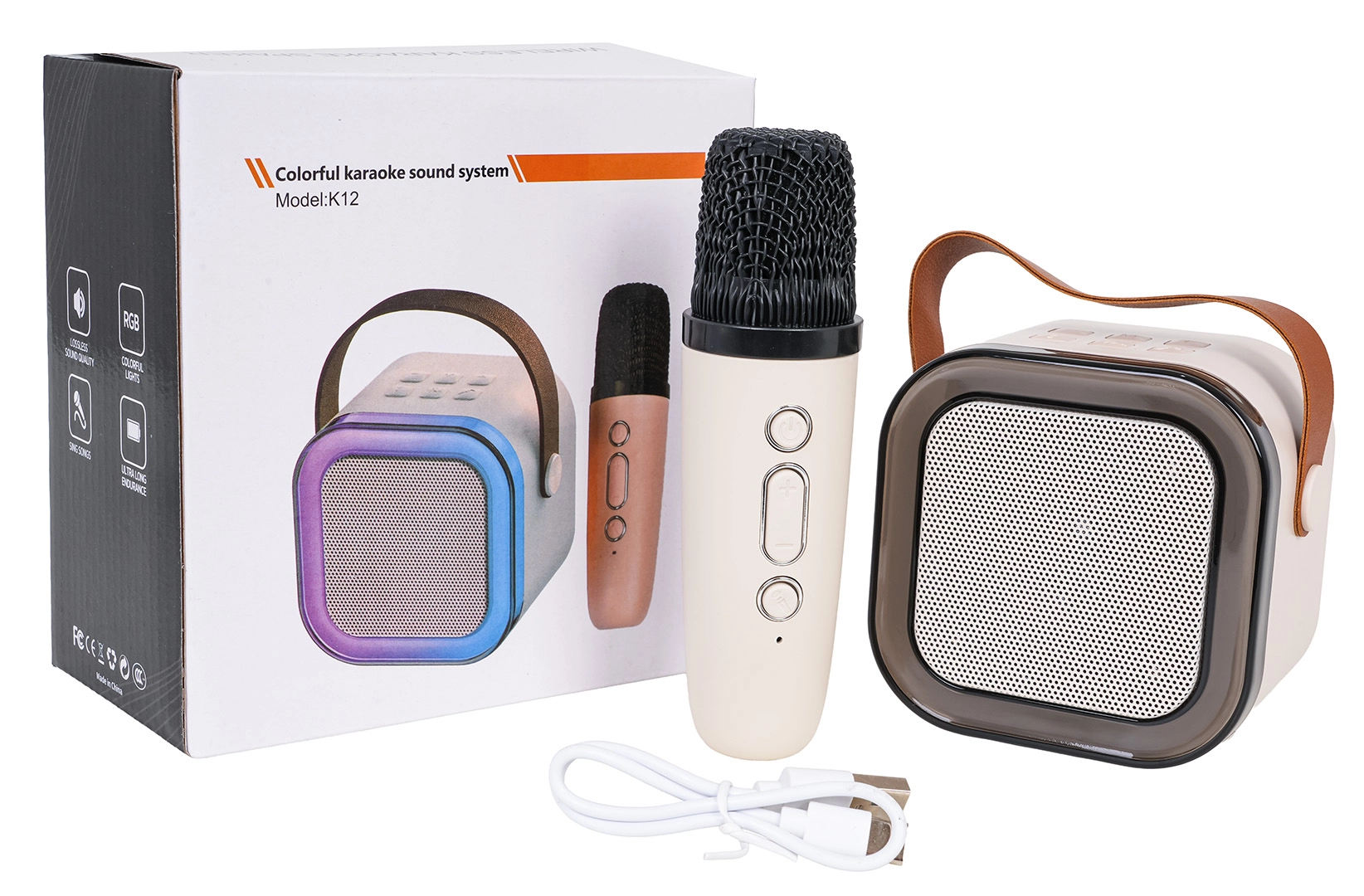 Set karaoke compatto per bambini da 3 anni e adulti che unisce un microfono wireless e un mini speaker potente con suono nitido e potente, illuminazione RGB e Bluetooth 5.0 stabile. Grazie alla riduzione del rumore DSP, al supporto MP3/WMA/WAV e agli ingressi inclusi scheda TF e USB‑C, è ideale per canto, annunci e divertimento in viaggio.