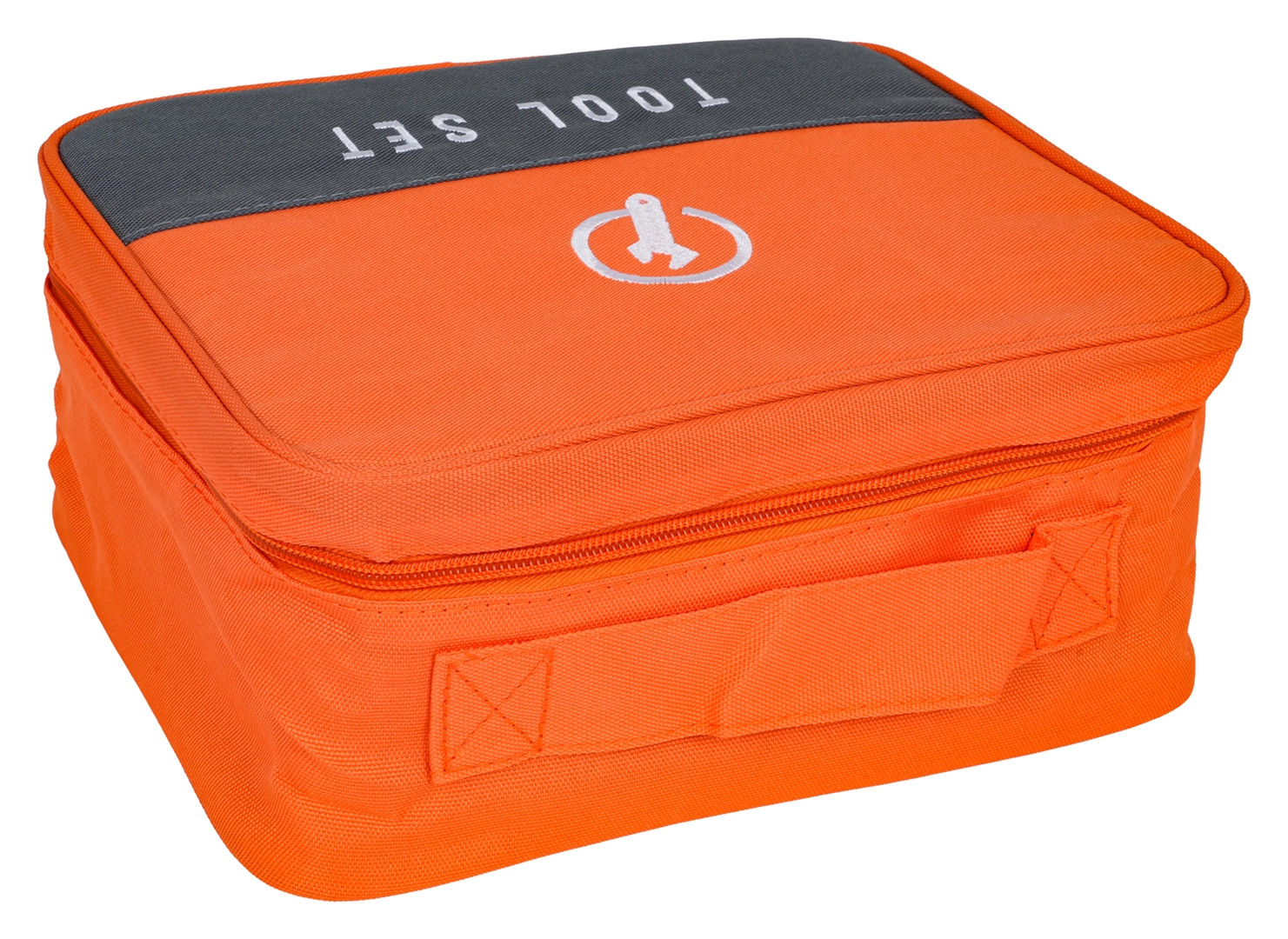 La resistente borsa in tessuto con zip e manico rinforzato mantiene gli attrezzi in ordine. Ideale per riporre e trasportare l’intero set.
