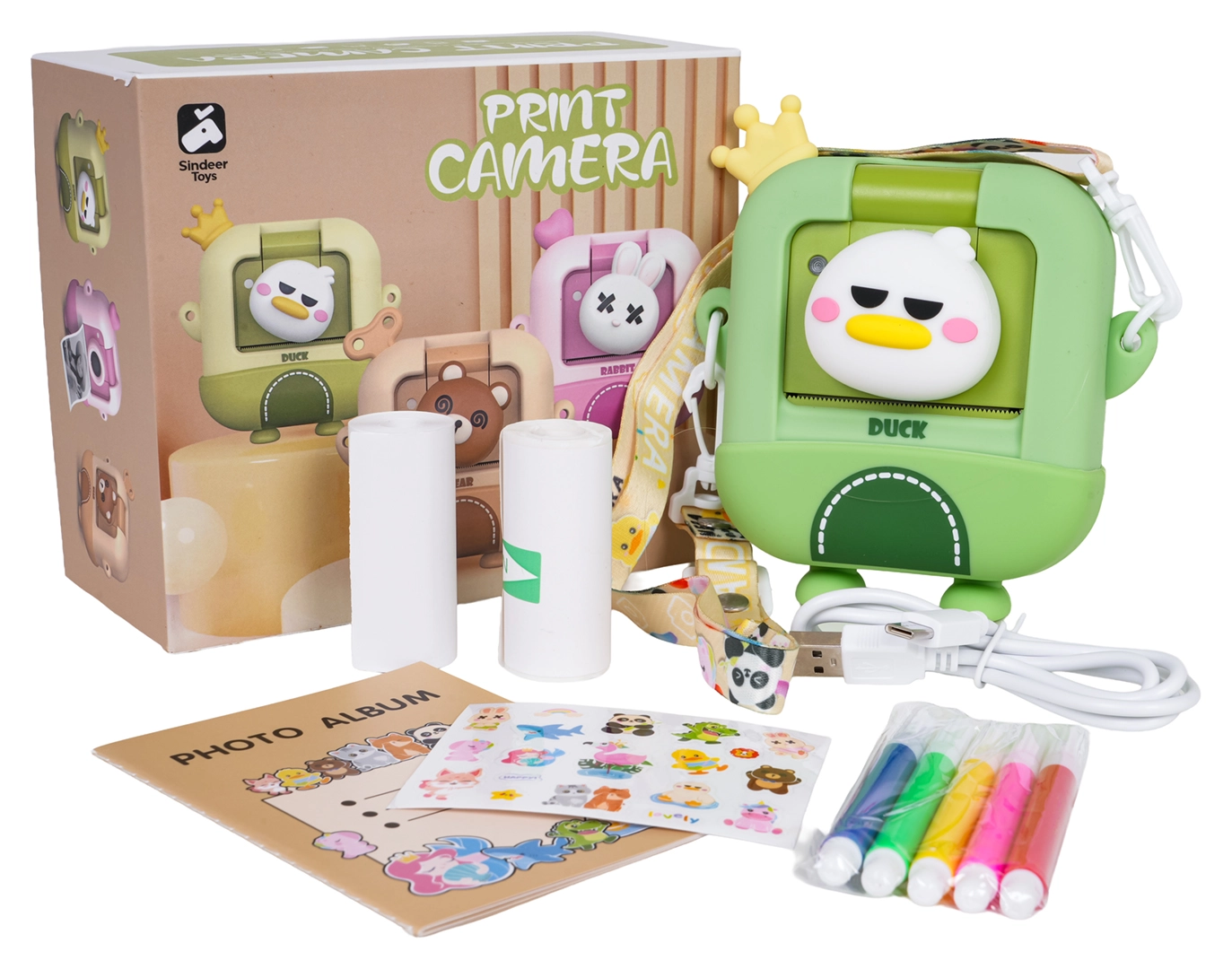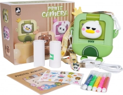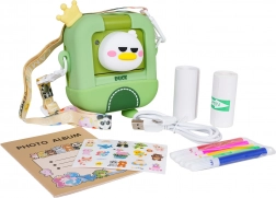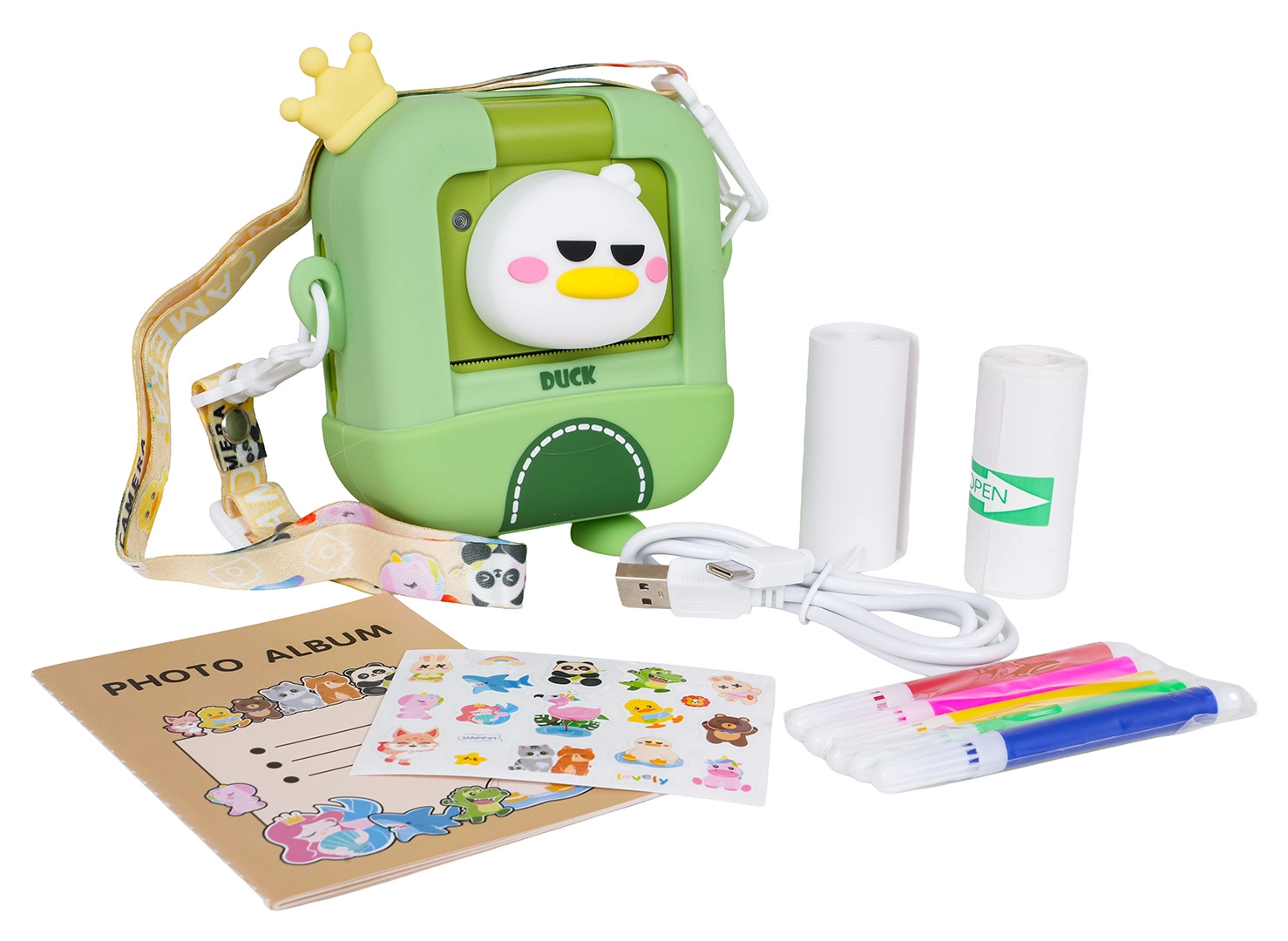 Rendi felici i piccoli fotografi con una fotocamera per bambini che, dopo lo scatto, stampa immediatamente su carta termica. Il set include un ricco assortimento di accessori per un divertimento creativo: custodia protettiva, 2 rotoli di carta termica, cavo USB, laccetto, album fotografico, adesivi e pennarelli colorati, grazie ai quali si possono colorare le foto in bianco e nero stampate. La fotocamera offre registrazione video, effetti divertenti e salvataggio su scheda (slot per scheda), risultando ideale come regalo per bambini dai 3 anni.